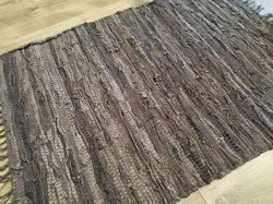 Estes tapetes são batidos em tear manual na Índia e é produzido a partir de resíduo de confecção de couro.