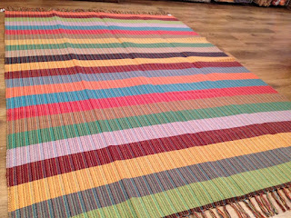 Tapetes em resíduo de malha de algodão batido em teares manuais de Minas Gerais.