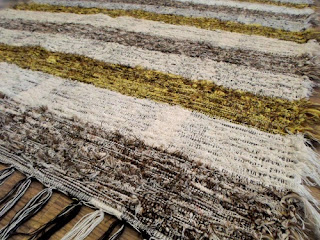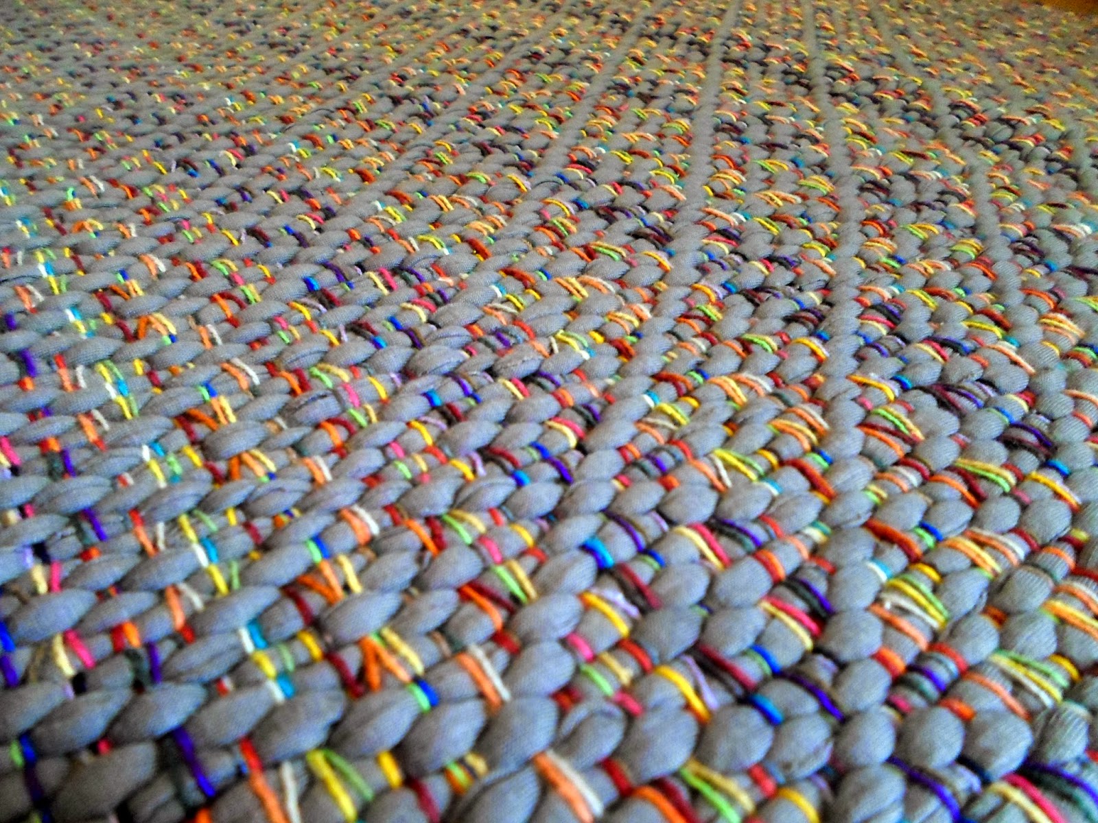 A urdidura é em fio de algodão e são ultilizados residuos têxteis de malha na sua confecção.