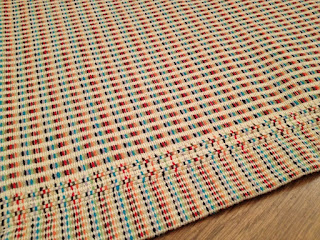 Tapetão medindo 1,38 x 1,90 também produzido com fio simples de algodão.